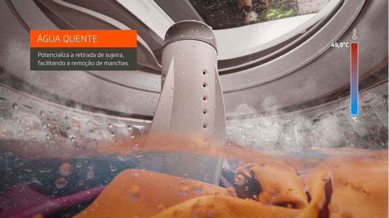 A Função Água Quente potencializa a retirada de sujeira, facilitando a remoção de manchas a partir do aumento de temperatura[2].