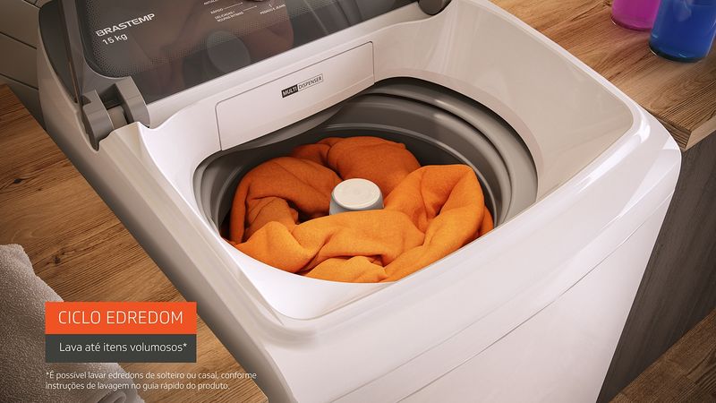 Cama, Banho, Jeans, Casaco... até Edredom de casal[3] pode ser lavado sem preocupação e sem esforço.
