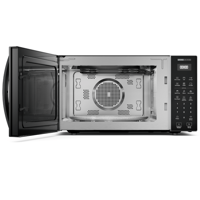 É um micro-ondas ou uma Air Fryer? É tudo em 1. Prepare suas receitas favoritas em um único produto, economizando espaço e deixando sua cozinha mais organizada.