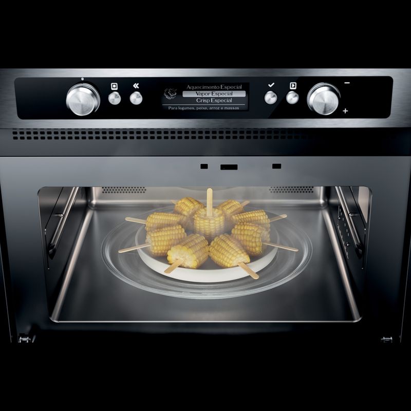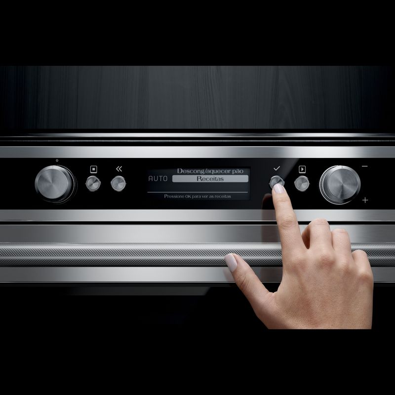 • Principais diferenciais: Receitas pré-programadas, Sistema 3D, Forno a vapor, Botão Multifunção + 8 funções especiais, Sensor cooking, Funções Crisp e Vapor
