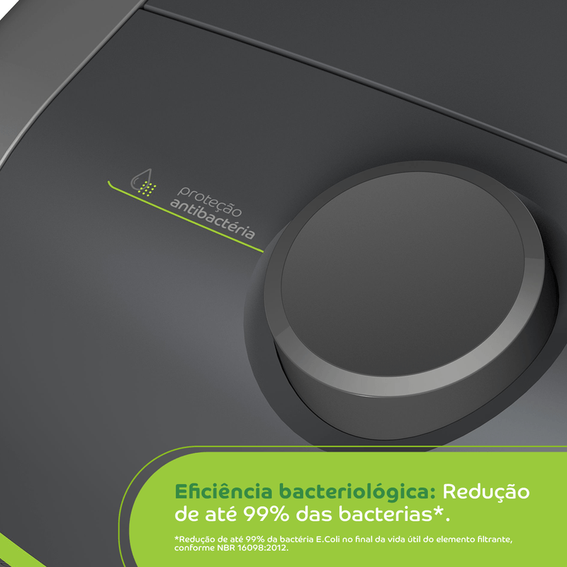 Principais diferenciaisFiltragem classe A, Compacto, Refil troca fácil, Alerta luminoso de troca de refil, Eficiência bacteriológica, Kit Instalação
