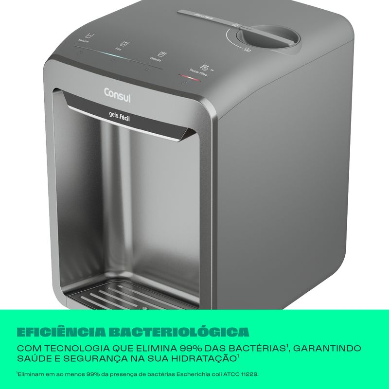 Redução de até 99% das bactérias, como por exemplo a E.Coli, que causa doenças gastrointestinais, garantindo mais saúde para sua família. Disclaimer: Redução de até 99% da bactéria E.Coli no final da vida útil do produto. Baseado no teste realizado com bactéria E. Coli.