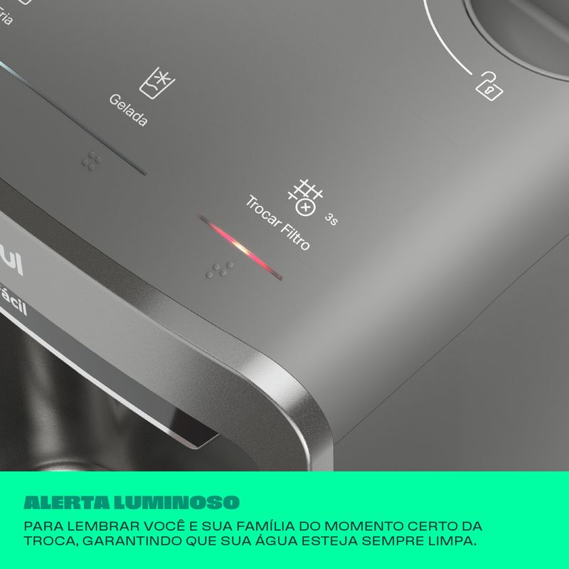 Pensando em garantir uma água sempre limpa, um alerta luminoso acenderá para te lembrar o momento certo de trocar o refil para você continuar bebendo água de qualidade.