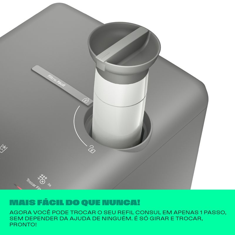 Mais fácil do que nunca! Agora você pode trocar o seu refil Consul em apenas 1 passo, sem depender da ajuda de ninguém. É só girar e trocar, pronto!