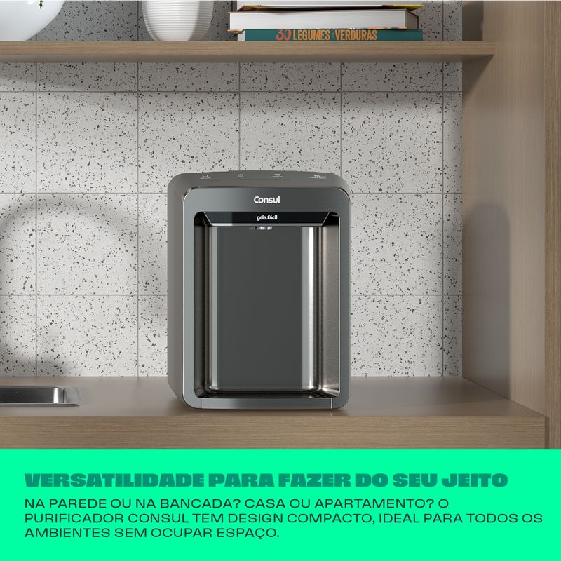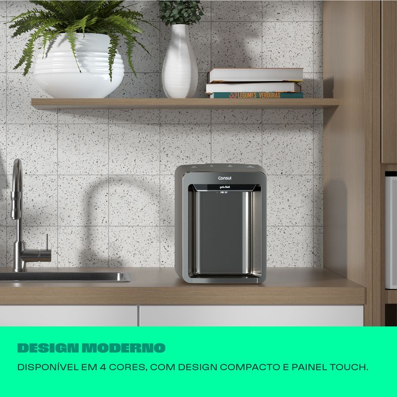 O Purificador Consul Eletrônico com Refrigeração é ainda mais compacto que suas gerações anteriores. Além de trazer um toque de design para qualquer canto da sua cozinha ou casa!