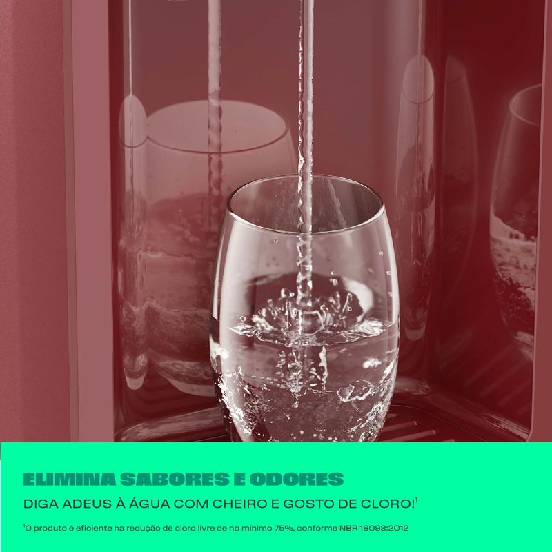 Além de ter painel em LED, feedback sonoro e braile, o mecanismo deste purificador é muito simples. Possui bandeja removível, refil girou, trocou e possibilita o encaixe de diferentes recipientes: copo, garrafa e até jarra!