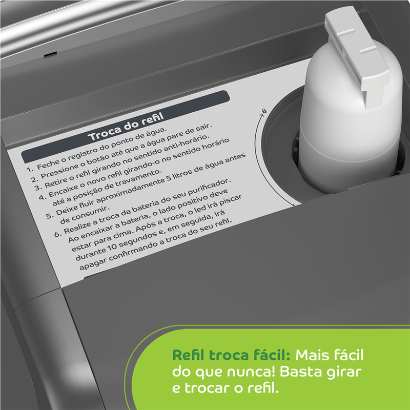 • Principais diferenciais: Filtragem Classe A, Água Natural Limpa Até sem Energia Elétrica., Eficiência Bacteriológica, Refil Troca Fácil, Kit Instalação, Versatilidade para Fazer do seu Jeito
