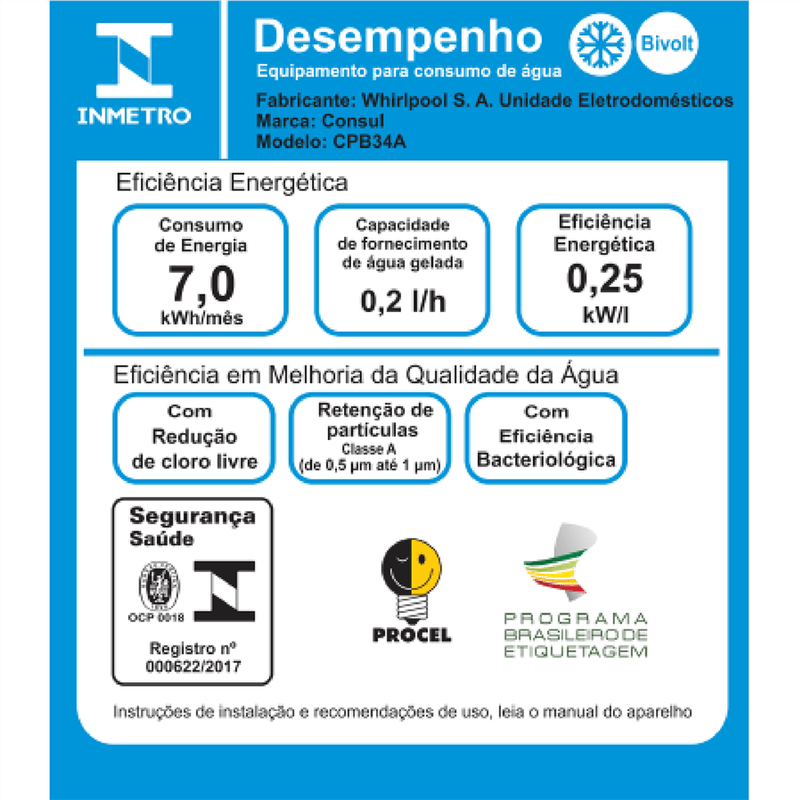 PurificadorPurificadorPurificador de Água Consul Cinza Refrigerado, com Proteção Antibactérias - CPB34AF