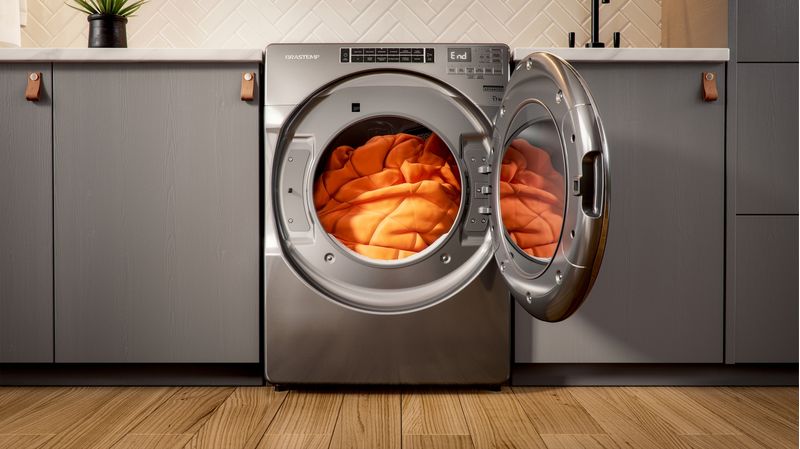 Máximo cuidado e proteção contra a formação de vincos mesmo após o ciclo de secagem. Adicione até 150 minutos de rotação e vapor após o término do ciclo.