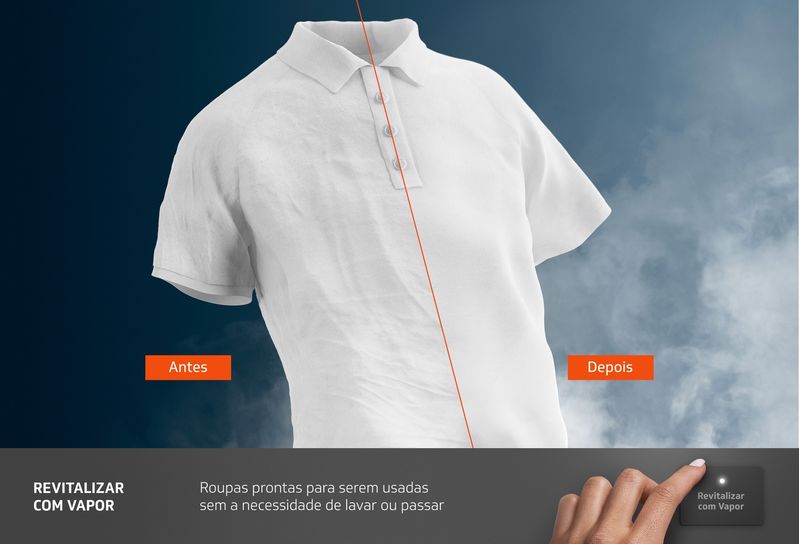 Revitaliza suas roupas sem precisar lavar ou secar. Perfeito para suavizar amassados e odores indesejáveis.