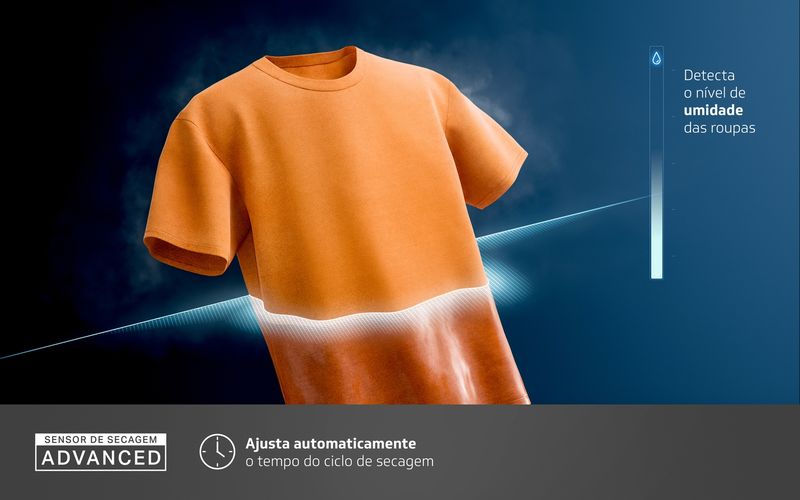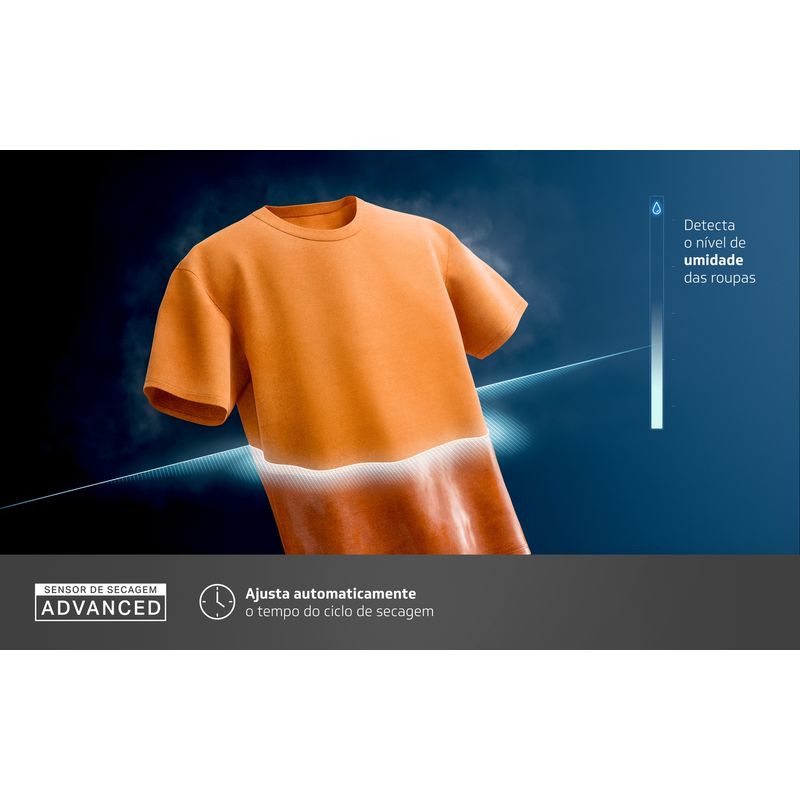 Sensores inteligentes que detectam o nível de umidade na roupa e ajustam automaticamente o tempo do ciclo escolhido, otimizando a duração da secagem. Suas roupas secas no tempo certo[1]!