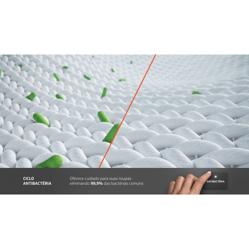 Opção que reduz a carga elétrica da roupa causada pelo atrito entre elas durante a secagem, evitando choques e desconforto ao vestir a roupa seca.