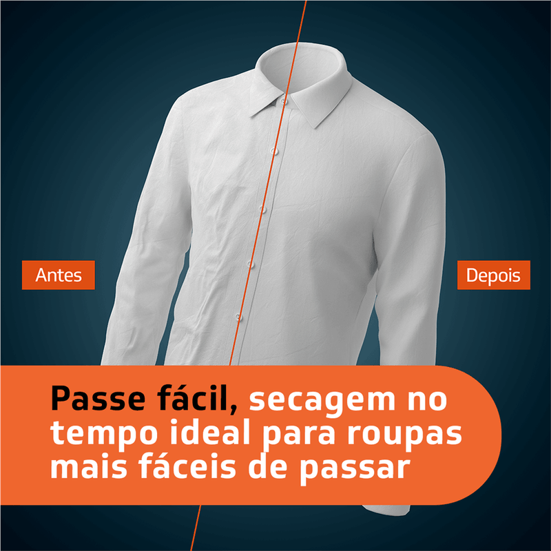 Secagem no tempo ideal que garante roupas mais fáceis de passar, facilitando as tarefas no dia a dia.